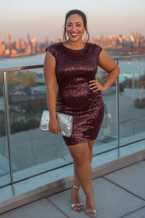 5. Heading to a city rooftop celebration? A burgundy sequin bodycon dress captures the sparkle of the skyline and hugs curves beautifully.