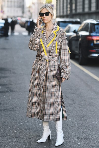 If you wish to shift the focus from the boots to the coat, opt for a plaid trench coat that demands attention, then .